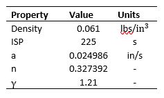 The expected propellant characteristics were also provided by MIT and are shown in Table 2. By having access to this data early on, it allowed our team to begin sizing the motor for our goals.