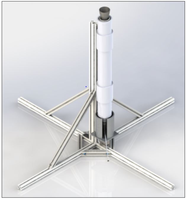 Pictured in Figure 2, a vertical test stand was selected for testing the motor. The test stand design was made by two undergraduate students within the group and is dominantly made from 8020 stock. The motor will be held in place by two metal tubes bolted to the vertical post. The motor will sit on a mount that is connected to a load cell. The forward closure is tapped, allowing a pressure line to extend out and connect to the pressure transducer.