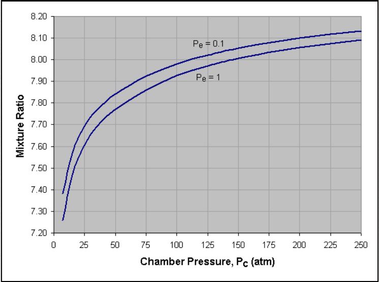 Due to low cost and system requirements, the combination of kerosene and HTP were selected. Cryogenics systems are more costly and increase the complexity of design. As this is my first attempt, the selected combination seemed more approachable. Next, desired chamber pressures and oxidizer to fuel ratios (O/F) needed to be selected. The left image shows the results of using NASA CEA (combustion equilibrium calculator) to test variations in these parameters. The right image shows publicly available data. While CEA indicates that an optimum O/F ratio of 6.5 would produce the highest ISP, much of the literature and available data use ratios of 7.65. Because of the availability of comparative information, and O/F ratio of 7.65 was selected.