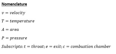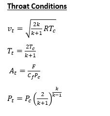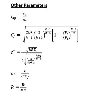To learn as much as I could, I opted to develop my own python code to perform liquid propulsion analysis, as well as assist in injector design and heat transfer studies. Currently, I have finished the performance analysis and am actively working on the heat transfer studies. This is being used in conjunction with Rocket Propulsion Analysis (RPA) software to validate my results. When it is finished, I will convert it to an executable file for public use. I have listed some of the formulas implemented below.