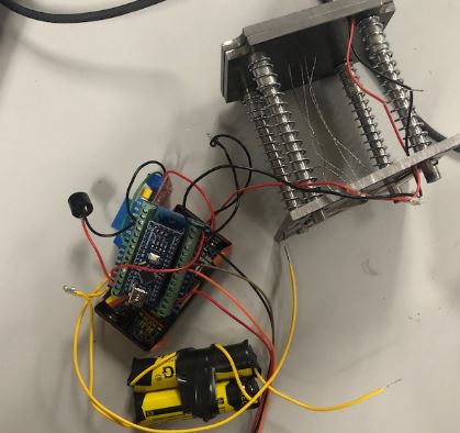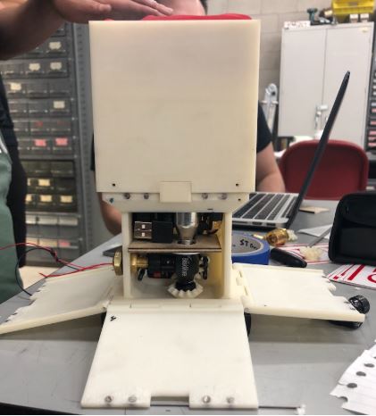 The remainder of the team worked on other aspects of the project including payload and electronics. Our team decided to store a 3U cubesat-styled payload into the upper stage of the rocket. The lower unit of the 3U was a spring-loaded ejection mechanism which was used to push out the upper two units. The upper two units were connected. One unit housed electronics and the parachute. The lower unit had an inflatable habitat controlled by a servo and CO2 canister. The upper units would eject from the rocket around an altitude of 1000 ft, deploy a parachute, and descend down to earth. Upon landing, a motor connected to a bike pump valve would pierce the CO2 canister allowing some gas to inflate the habitat and force open doors on the exterior of the 2U.
