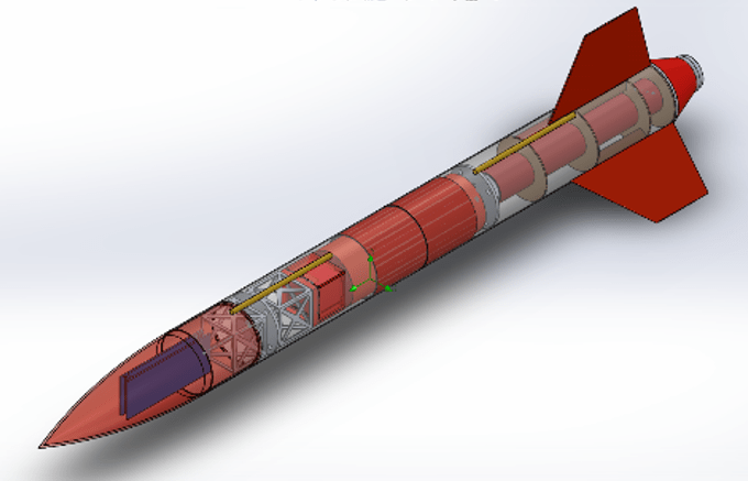The competition required a stability margin of 1.5 – 2.0, which we successfully acheived, producing a value of 1.72. As the electronics design evolved, modifications in weight were offset using weights in the nosecone. Once a suitable design had been chosen, the parts were modeled in SolidWorks to get a feel for sizing constraints and analysis.