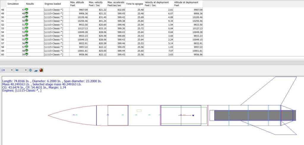 A video of the launch can be seen below. The Loveship reached an altitude of 8200 ft and a max velocity of 814.7 ft/s. Overall, our team placed 26th out of 107 total, and 12th out of 46 teams in our category. We believe substantial altitude loss occured due to non-nominal weather. In addition to this, it appears the rocket trajectory off the launch rail temporarily follows a non-linear path before correcting itself, which may have been caused by a launch lug getting misgrooved on the rail.
