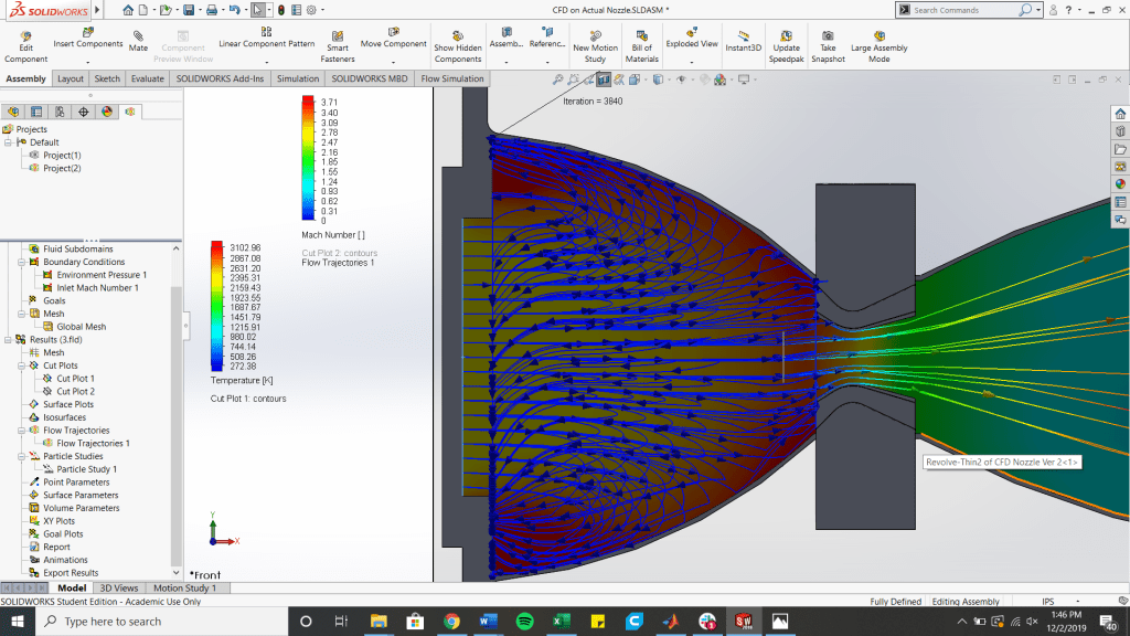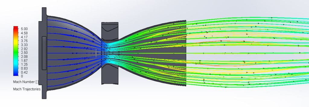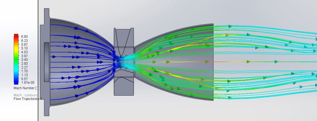 As this was my first propulsion project, my knowledge was very limited. Due to this, I ran CFD in SolidWorks FlowSim to compare values. The results of this analysis are shown below in the slideshow.