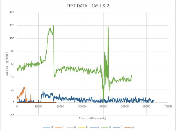 The data gathered was far from ideal, with a max output of 120 grams. We believe the main culprit of poor data to be the load cell. Prior to testing, there were issues with finding the correct calibration factor and zeroing it out. Unfortunately, the nozzle manufacturing was completed during the final week and a new, higher quality load cell could not be ordered on time.